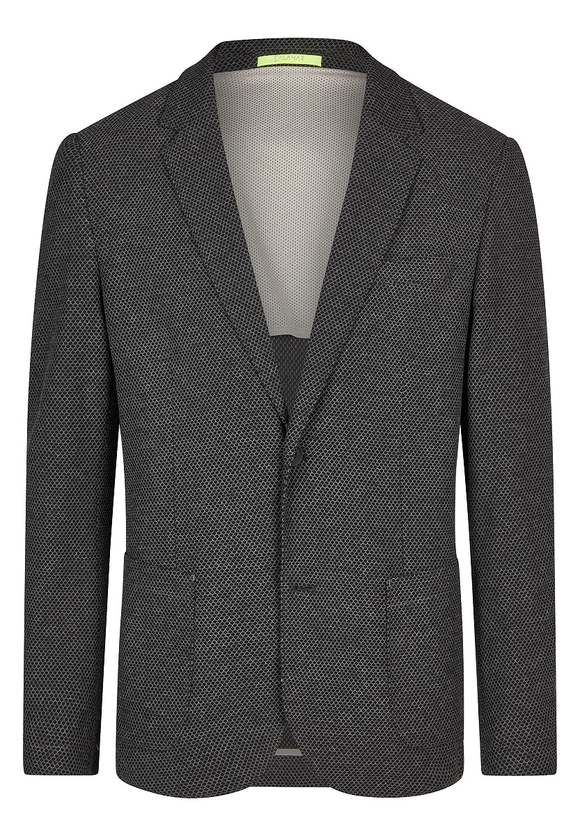 Dieses CALAMAR Sakko aus Waffelpiqué kombiniert Tradition mit moderner Struktur. Der Einreiher mit zwei Knöpfen und das fallende Revers unterstreichen die klassische Form, während die strukturierte Ware in Waffel-Optik das Herrensakko modern wirken lässt. Halbgefüttert und komfortabel – perfekt für vielseitige Outfits.