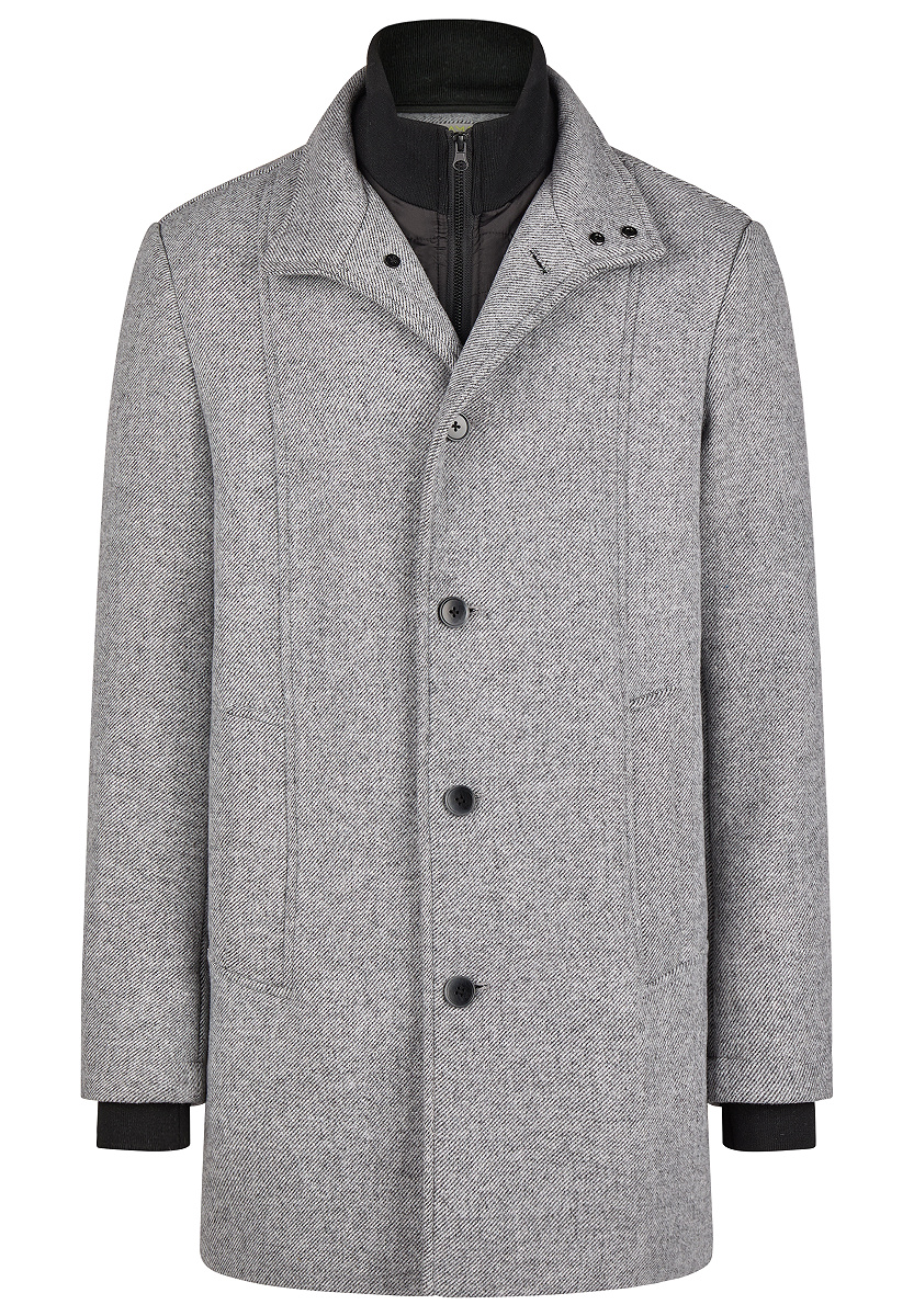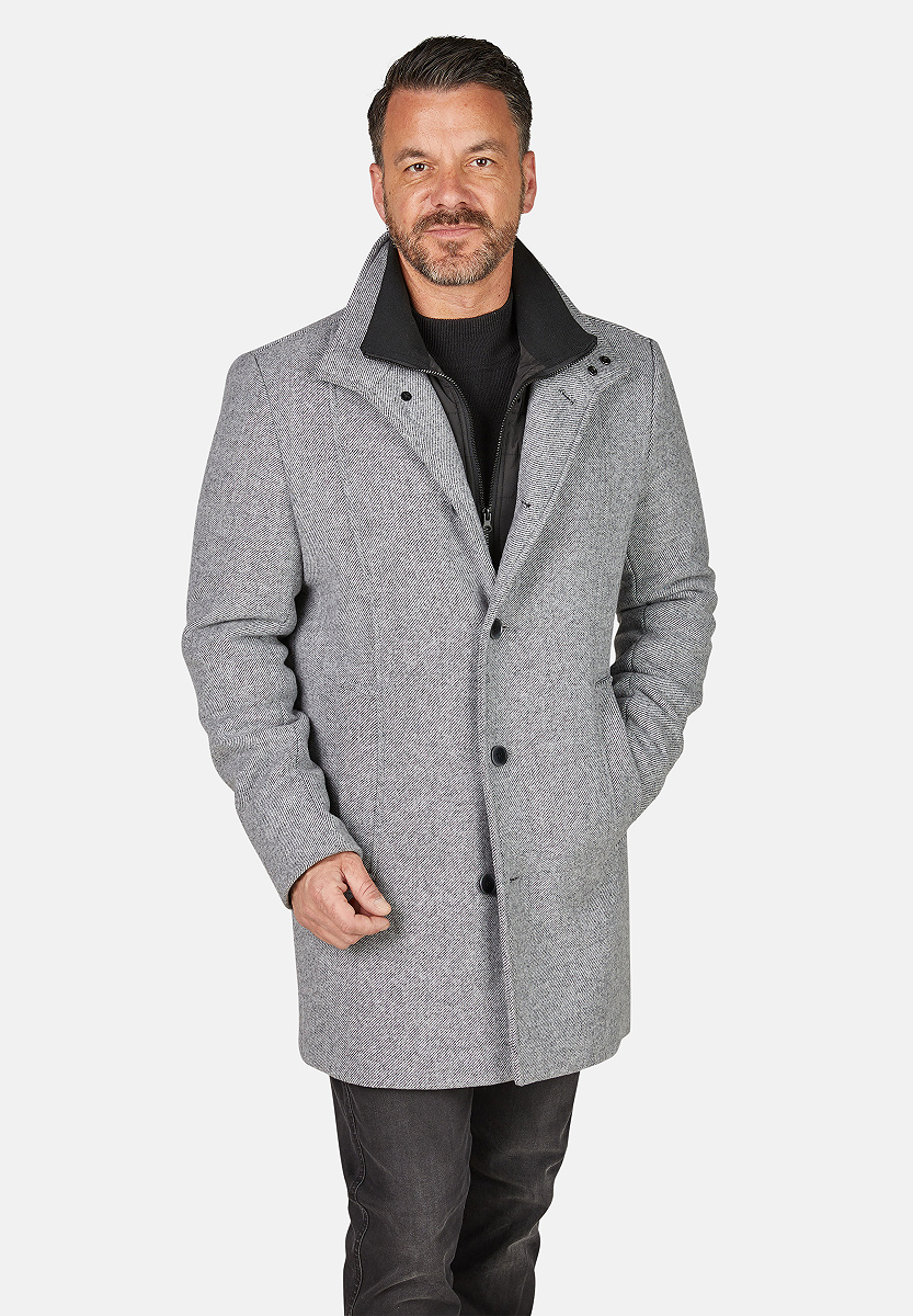 Dieser elegante CALAMAR Wollmantel vereint zeitlosen Chic mit moderner Funktionalität. Als hochwertiger Herrenmantel überzeugt er durch eine klare Linienführung, eine klassische Knopfleiste und einen modernen Stehkragen mit praktischen Druckknöpfen. Die herausnehmbare Innenweste mit Stehkragen aus Strick schenkt Dir zusätzliche Wärme und Flexibilität. Seitliche Leistentaschen unterstreichen den smarten Look, während die edle Wollqualität in Steilgrad-Optik höchste Ansprüche erfüllt. Ein CALAMAR Wollmantel, der Dich souverän und stilvoll durch die kalte Jahreszeit begleitet.