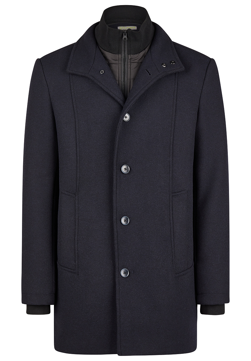 Dieser elegante CALAMAR Wollmantel vereint zeitlosen Chic mit moderner Funktionalität. Als hochwertiger Herrenmantel überzeugt er durch eine klare Linienführung, eine klassische Knopfleiste und einen modernen Stehkragen mit praktischen Druckknöpfen. Die herausnehmbare Innenweste mit Stehkragen aus Strick schenkt Dir zusätzliche Wärme und Flexibilität. Seitliche Leistentaschen unterstreichen den smarten Look, während die edle Wollqualität in Steilgrad-Optik höchste Ansprüche erfüllt. Ein CALAMAR Wollmantel, der Dich souverän und stilvoll durch die kalte Jahreszeit begleitet.