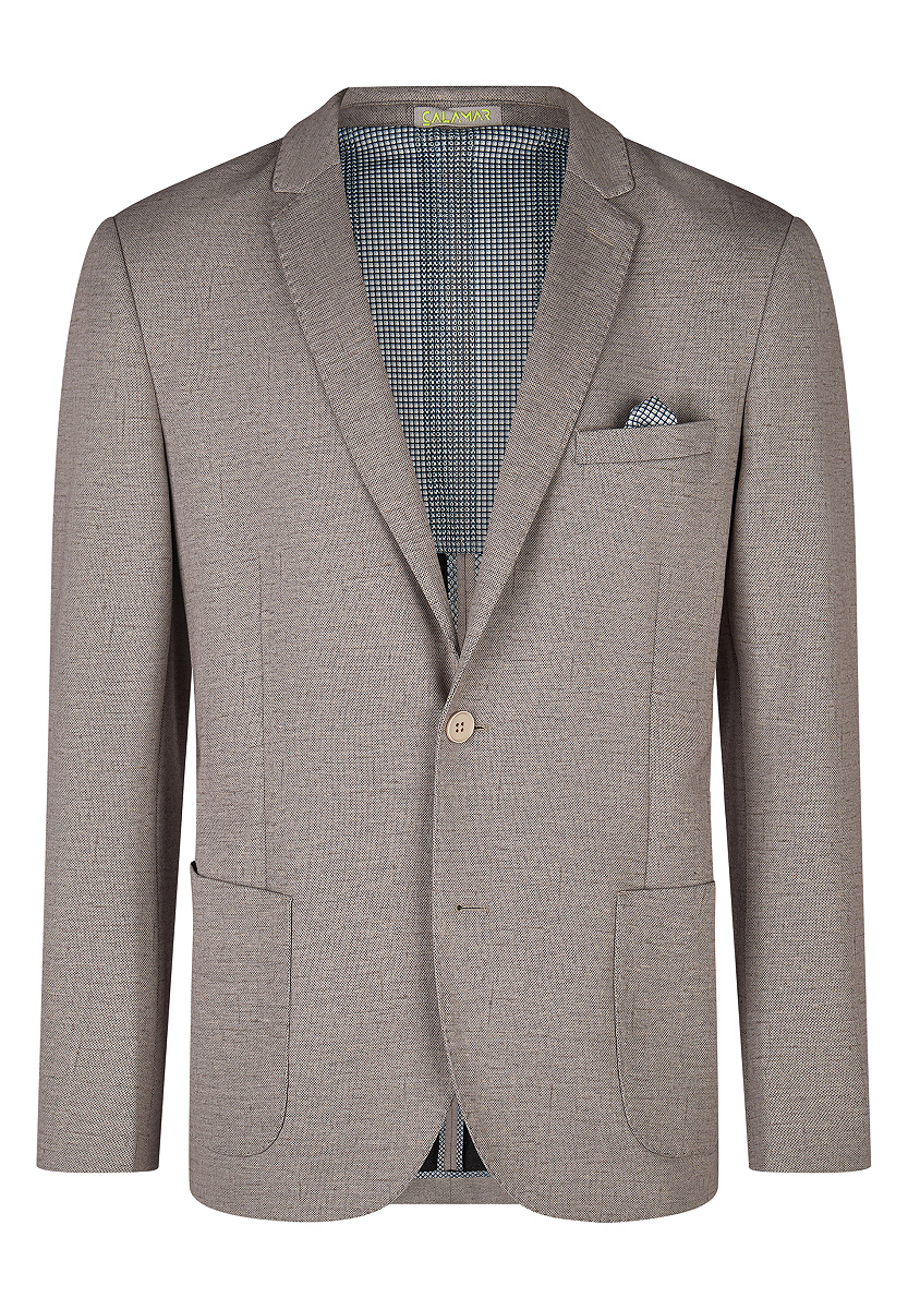 Das Sakko aus dieser Kollektion besticht durch seine weiche Jerseyqualität mit Leinenanteil und einer modernen Passform. Das absteigende Revers und die seitlich aufgesetzten Taschen verleihen dem Sakko einen eleganten Look, während zwei Innentaschen für zusätzlichen Stauraum sorgen. Die Kombination aus Polyester, Polyamid und Leinen sorgt für ein angenehmes Tragegefühl – perfekt für den vielseitigen Mann.