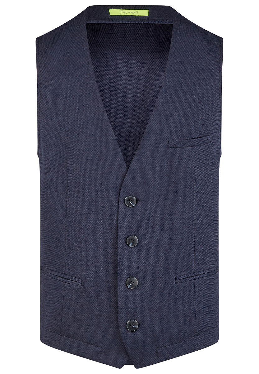 Die CALAMAR Weste mit vier Knöpfen und Leistentasche auf Brusthöhe stammt aus der Frühjahr/Sommer-Kollektion des Herstellers und ist die perfekte Ergänzung für das Sakko der Linie. Es überzeugt mit einem eleganten und doch modernen Look und zeichnet sich dank Regular Fit Passform mit modernem, körpernahem Schnitt nicht unter dem Sakko ab. Die Herrenweste besteht aus einer stretchigen Baumwoll-Polyester-Mischung und die Seitenteile sind innen gefüttert. Seitliche Doppelpaspeltaschen runden den eleganten Look ab, während die Riegeln an der Rückseite eine komfortable Regulierung der Weite ermöglichen. Ihr elegantes Design macht die CALAMAR Weste zu einem lässigen Add-On für formelle Anlässe.