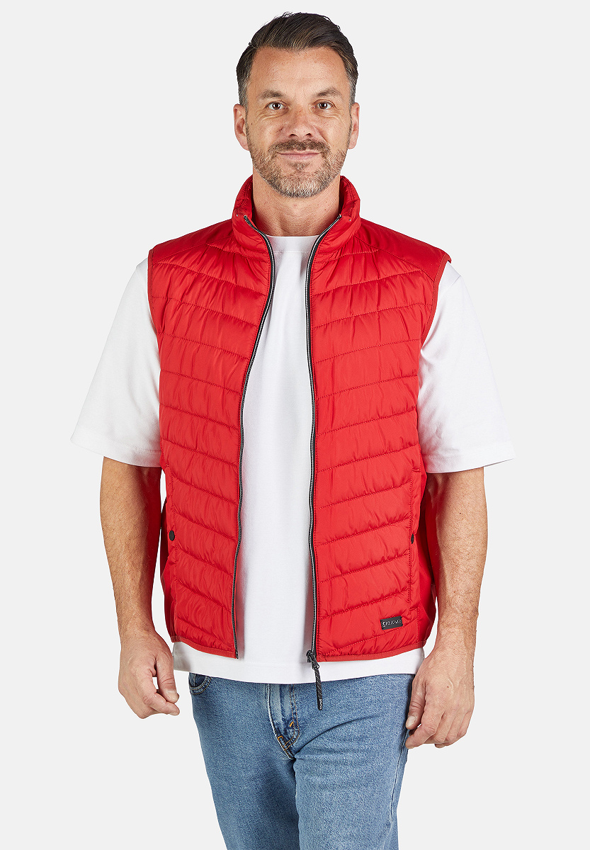 Mit dieser Steppweste von CALAMAR setzt Du auf sportiven Komfort und moderne Stepp-Optik. Der elastische Saum sorgt für optimale Passform, während Seitentaschen mit Druckknopf funktionalen Stauraum bieten. Die leichte Wattierung hält angenehm warm und bleibt dabei komfortabel. Eine praktische Aufhängeschlaufe und der Frontreißverschluss runden das durchdachte Design ab. Diese Herren Steppweste ist ideal für flexible Layering-Styles und verleiht Deinem Outfit eine dynamische Note.