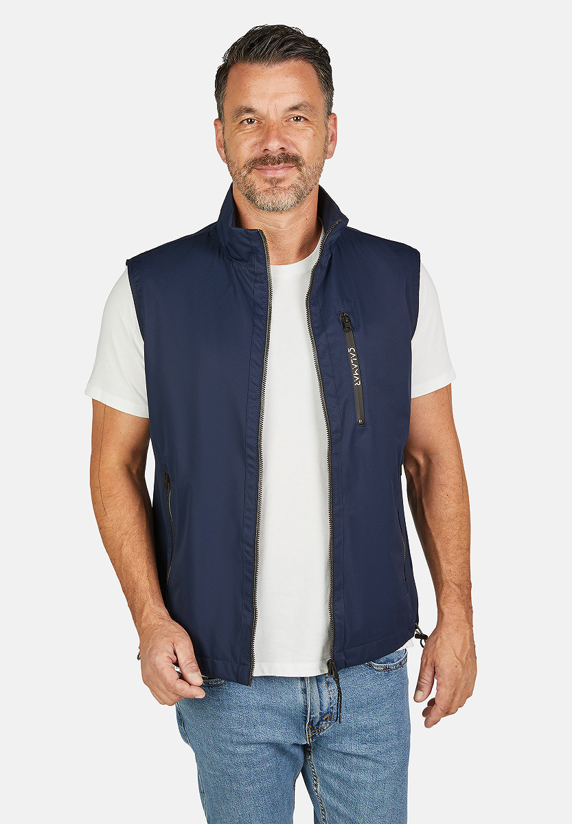 Die Performance-Weste ist der ideale Begleiter für sportliche und anspruchsvolle Männer. Der Jacquard-Strukturstoff mit Membranlaminierung schützt dich vor Wind und Regen, während die verstellbaren Elemente wie der Saum und die funktionale Innentasche mit Reißverschluss für höchsten Komfort sorgen. Die leicht zugänglichen Seitentaschen machen es dir einfach, alles zu verstauen, was du unterwegs brauchst.