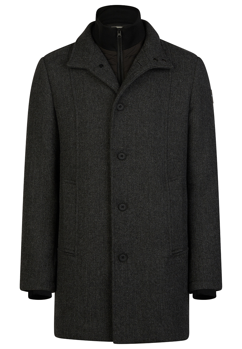 Der schlicht elegant designte Herrenmantel von Calamar in Fischgratoptik passt als Allrounder sowohl zum Anzug als auch zur Jeans. Der sportive Stil macht diesen Calamar Mantel mit der herausnehmbaren Innenweste zum idealen Begleiter im Alltag. Im Winter wärmt der Herrenmantel aus der hochwertigen Wollqualität am Hals mit dem gestrickten Stehkragen der Weste. Kleine Wertgegenstände wie eine Geldbörse kannst Du sicher in der mit Reißverschluss gearbeiteten Innentasche verstauen. Der Stehkragen, der an die Knopfreihe anschließt, lässt sich mühelos auch bei Wind mit Druckknöpfen verschließen. Dieser kurze Calamar Mantel hat zudem innenliegende weiche Strickbündchen an den Ärmelsäumen, die zusätzlich vor Kälte schützen.