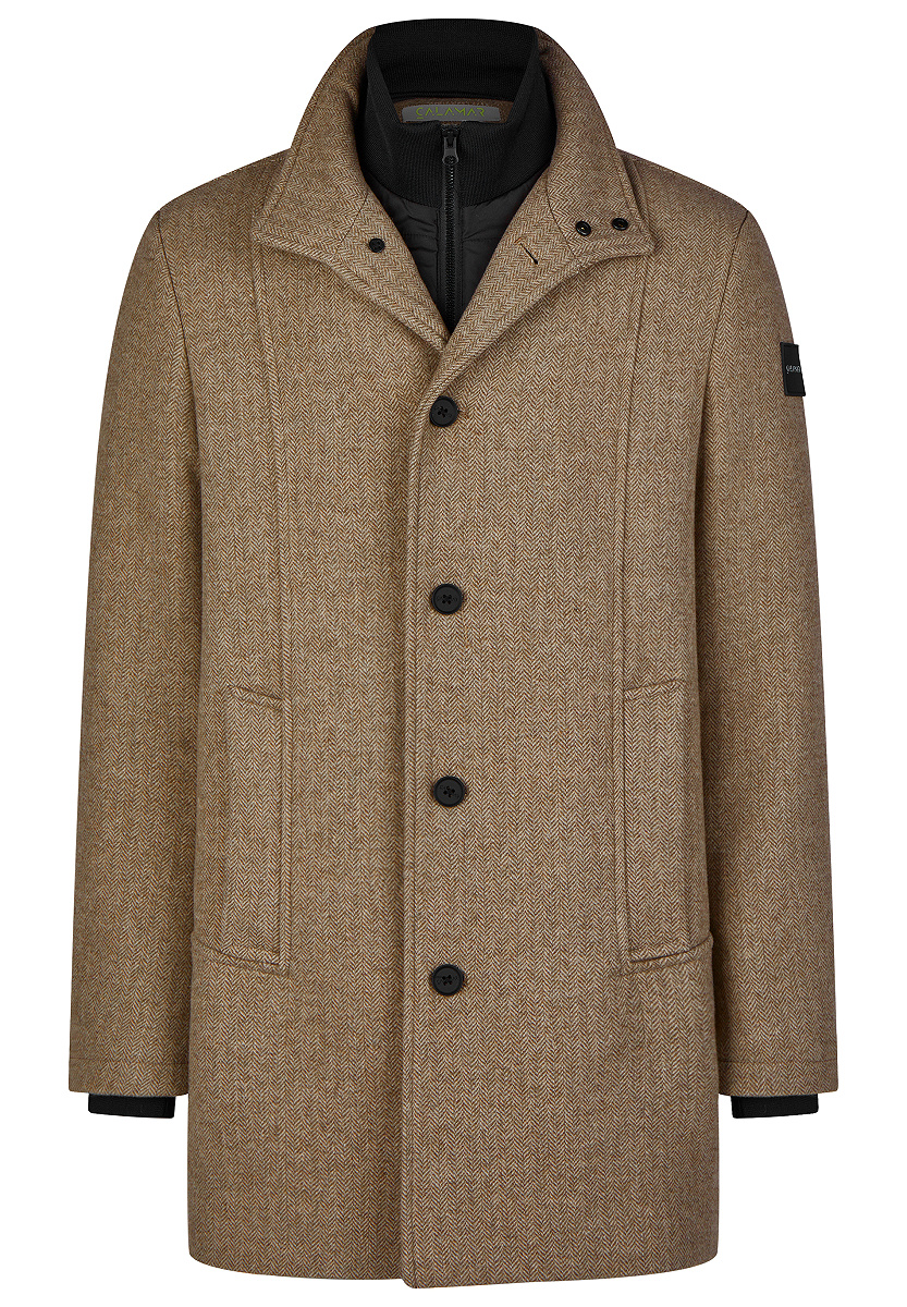 Der schlicht elegant designte Herrenmantel von Calamar in Fischgratoptik passt als Allrounder sowohl zum Anzug als auch zur Jeans. Der sportive Stil macht diesen Calamar Mantel mit der herausnehmbaren Innenweste zum idealen Begleiter im Alltag. Im Winter wärmt der Herrenmantel aus der hochwertigen Wollqualität am Hals mit dem gestrickten Stehkragen der Weste. Kleine Wertgegenstände wie eine Geldbörse kannst Du sicher in der mit Reißverschluss gearbeiteten Innentasche verstauen. Der Stehkragen, der an die Knopfreihe anschließt, lässt sich mühelos auch bei Wind mit Druckknöpfen verschließen. Dieser kurze Calamar Mantel hat zudem innenliegende weiche Strickbündchen an den Ärmelsäumen, die zusätzlich vor Kälte schützen.